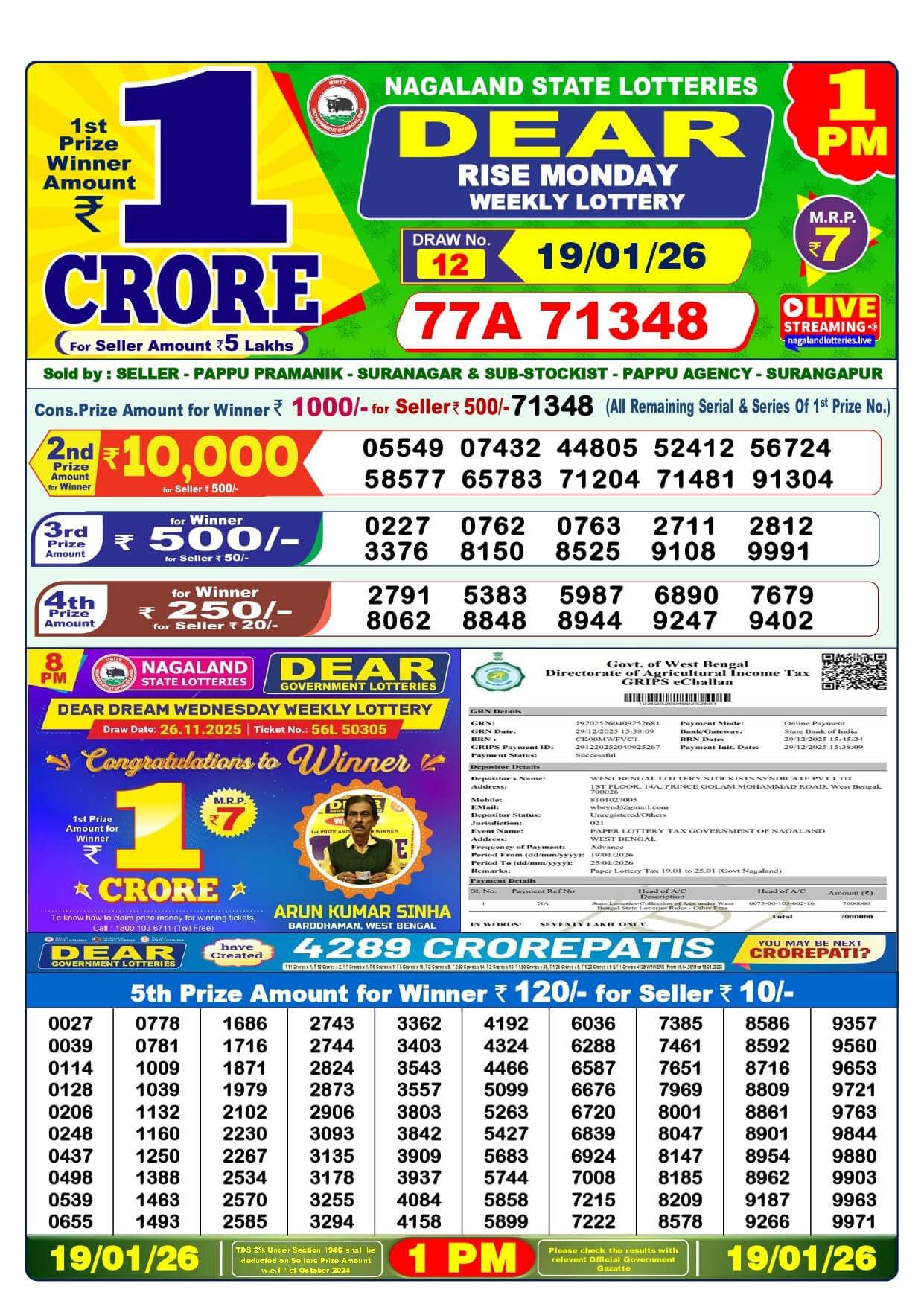 বর্তমানে এই ডিয়ার লটারি পশ্চিমবঙ্গের নাগাল্যান্ড রাজ্য থেকে পরিচালনা করা হয় এবং বহু সাধারণ যুবকরা বা সাধারণ মানুষের আইডি টিকিটের মাধ্যমে তাদের জীবনকে পরিবর্তন করার জন্য তারা এই ডিয়ার লটারি টিকিট কেটে থাকেন এবং যথা সময় তারা রেজাল্ট প্রকাশিত হওয়ার পর দেয়াল লটারি টিকিট নাম্বারের সাথে ডিয়ার লটারি রেজাল্ট নাম্বার মিলিয়ে দেখে নেন। এবং সারাদিনে মোট তিনটি সময়ের খেয়ালে টিকেট খেলার আয়োজন করা হয় এবং তিনটি সময়ের মধ্যে সবথেকে বেশি খেলা হয় এই মর্নিং খেলা। এর থেকেও বেশি খেলা হয় নাইটের খেলা। কিন্তু মর্নিং এর খেলার বেশি হওয়ার কারণ হলো এর টিকিট বহু সাধারণ মানুষরা তারা কাজ থেকে বাড়ি ফেরার পথেই মর্নিং এর লটারি টিকিট তারা সংগ্রহ করে থাকেন এবং যথা সময়ে সংগ্রহ করে তারা বাড়ি নিয়ে গিয়ে অনলাইনে মাধ্যমে ডিয়ার লটারি টিকিট নাম্বারের সাথে ডিয়া লটারি রেজাল্টের নাম্বার মিলিয়ে দেখতে পারেন। আর বন মর্নিং এর লটারি টিকিট খেলার ক্ষেত্রে তারা সন্ধ্যা থেকে শুরু করে অর্থাৎ অনেক ক্ষেত্রে আগের দিন সকাল থেকেই এই পরের দিন সকালের মর্নিং খেলার টিকিট বিক্রি হতে শুরু করে অনেকটা সময় টিকিট বিক্রি হওয়ার ফলে বহু সাধারণ মানুষরা তারা টিকিট সংগ্রহ করতে থাকেন এবং সংগ্রহ করতে করতে তারা টিকিট সংগ্রহ করে থাকেন। এমনকি দুপুরে একটা মধ্যে আপনাকে এই মর্নিং এর টিকিট সংগ্রহ করতে হবে যেকোন ডি আলোট এর টিকিট কাউন্টার বা দোকান থেকে এবং সংগ্রহ করার পর যথাসময়ে দেয়াল লটারি রেজাল্টের সময় অর্থাৎ দুপুর একটা ১৫ নাগাদ মর্নিং এর লটারি রেজাল্ট প্রকাশিত হওয়ার পর যথাসময়ে এই ওয়েবসাইটে মাধ্যমে আপলোড করে দেয়া হবে আপনারা দে লটারি টিকিট নাম্বারের সাথে দেয়ালের রেজাল্ট নাম্বার মিলিয়ে দেখে নিতে পারবেন।